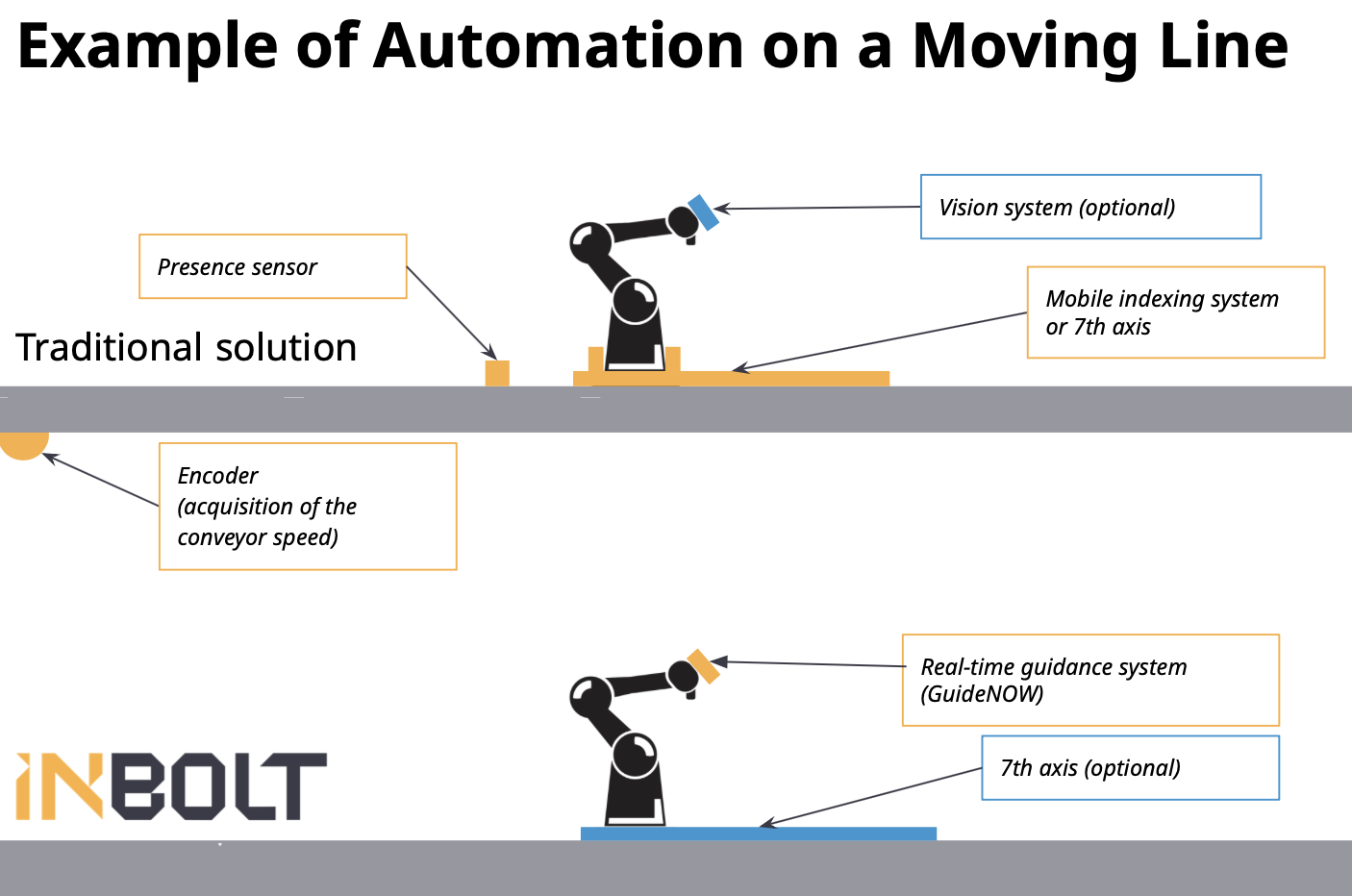 On a moving line, inbolt’s solution offers increased flexibility and allows the mission to be completed while the system is in motion.