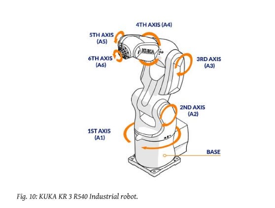 Six axes: Total freedom – it can move anywhere and rotate in any direction. Six degrees of freedom are usually enough for most tasks a robot needs to do (assembly, heavy lifting). If a robot has fewer, it’s often specialized for simpler tasks.